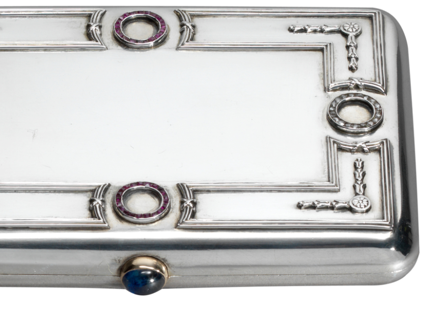 We sold this Edwardian silver cigarette case on behalf of a private East Anglian client, through specialist Decorative Art auctioneers, Matthew Barton Limited in London(now part of the Olympia Auction Group). Originally catalogued with a top estimate of £6,000 this desirable jewelled case, signed in Cyrillic by Karl Fabergé, eventually made £10,980.
